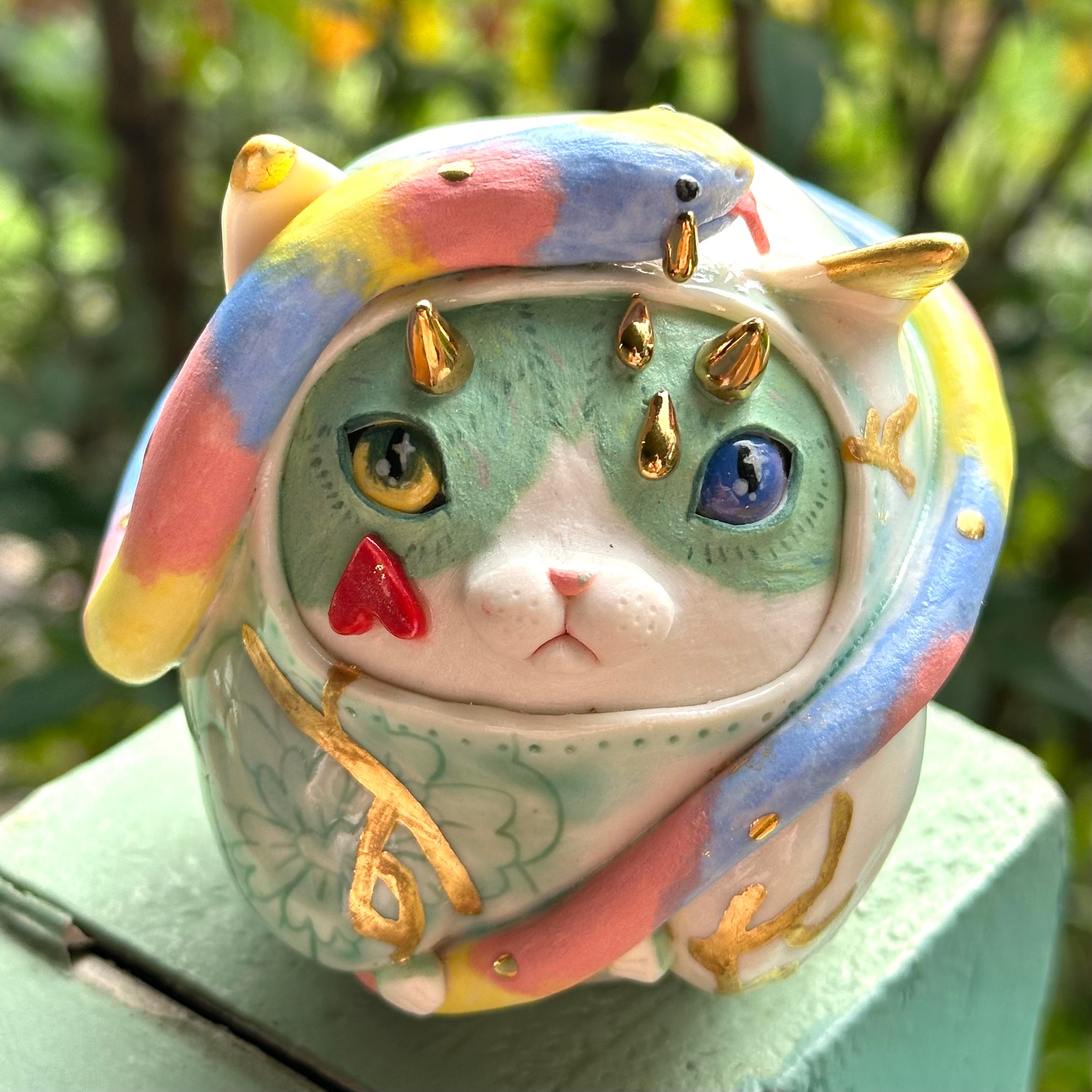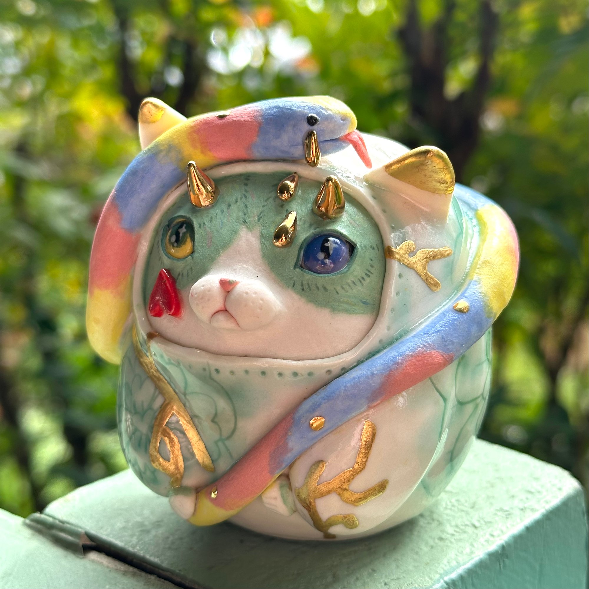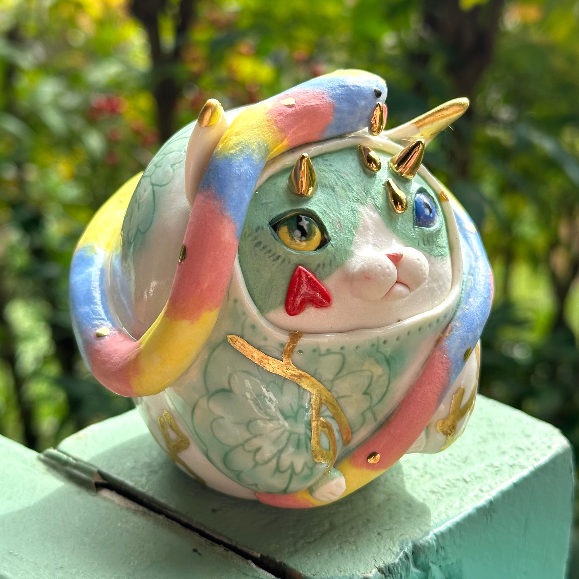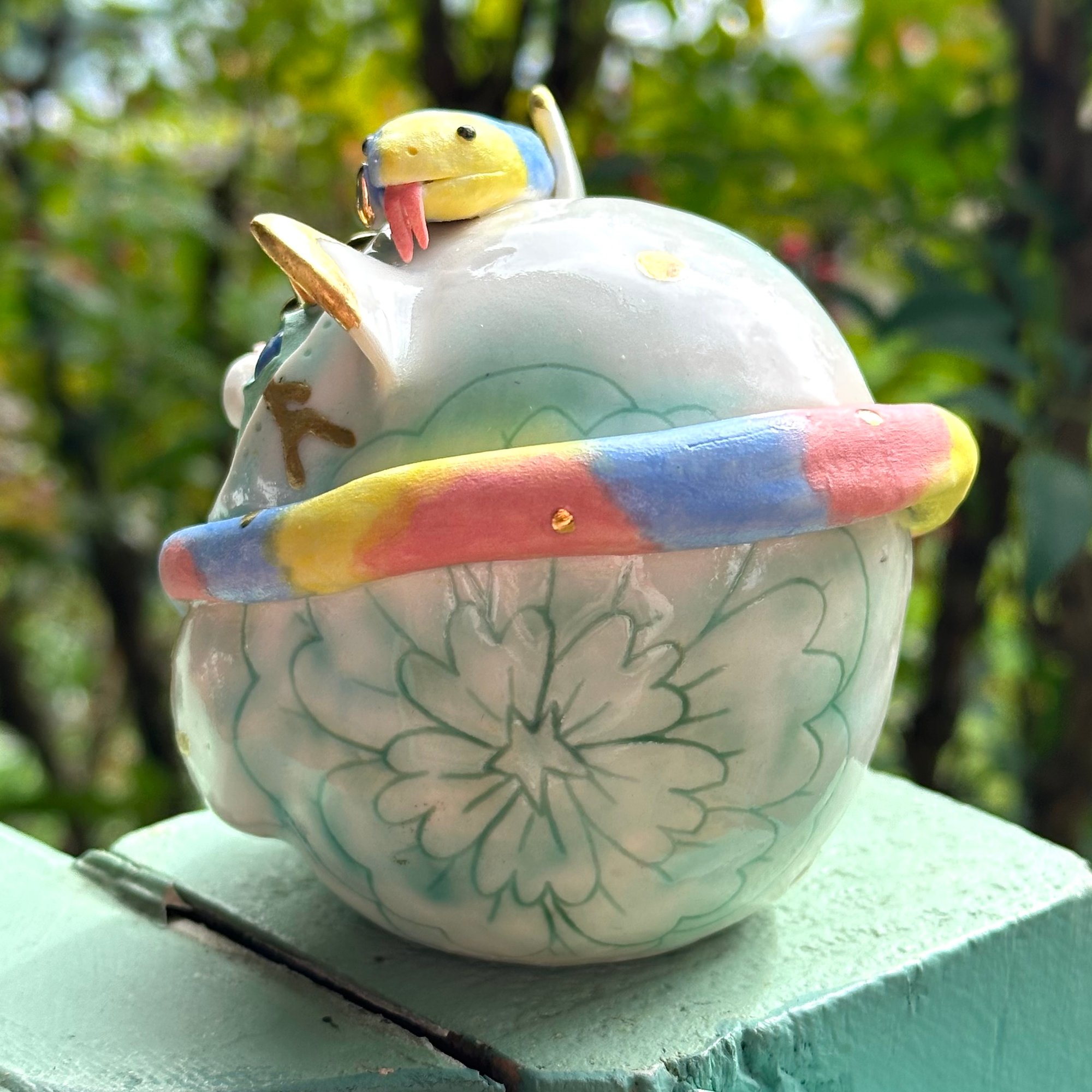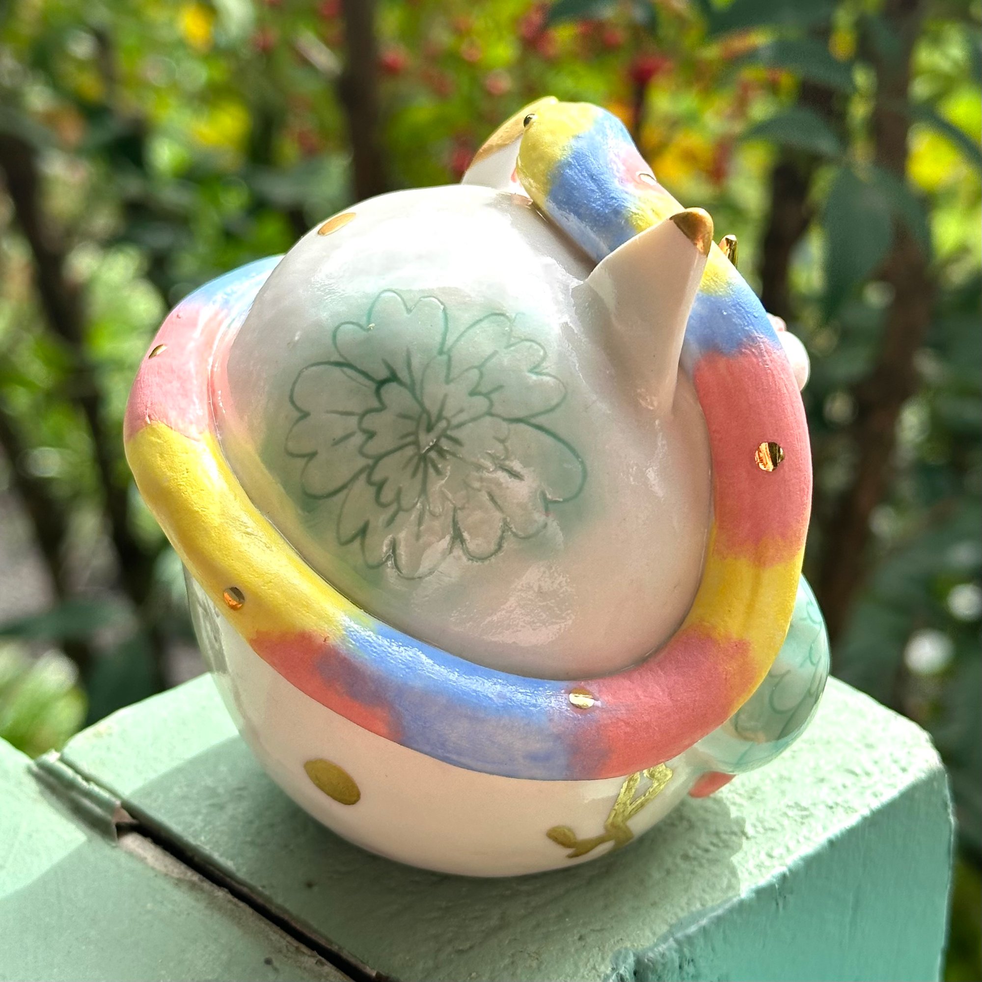 Materials: Porcelain, Glaze, Underglaze, 22k Gold Luster, 23k Gold Leaf, and Resin