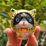 The eyes of the skull are set with odd color vintage Swarovski, one is dark red and the other one is blue green. The pale blue part of the outfit has iridescent effect. They are hard to capture with a camera. Please message me if you'd like to see a video.