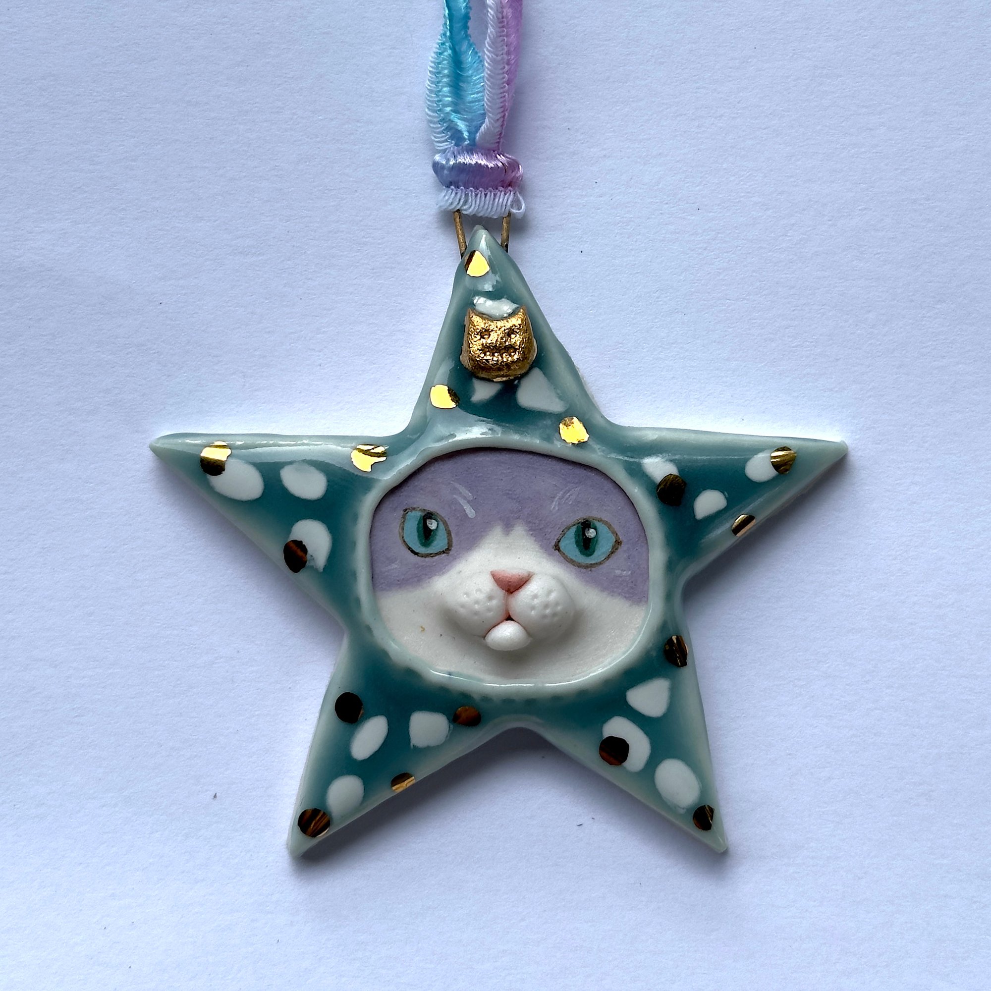 Materials: Porcelain, Glaze, Underglaze, 22k Gold Luster, High Temp Wire