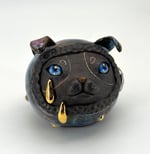 Materials: Stoneware, Glaze, Underglaze, 22k Gold Luster, Resin